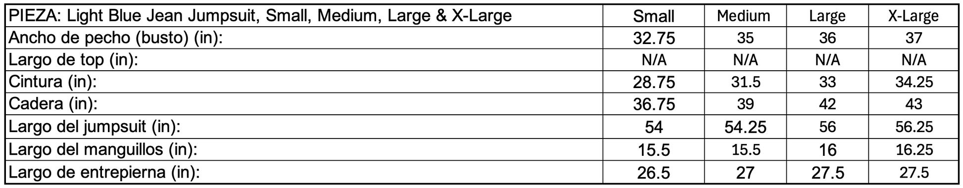 Light Blue Jean Jumpsuit, Small, Medium, Large & XLarge