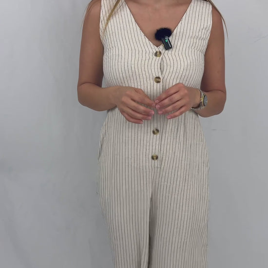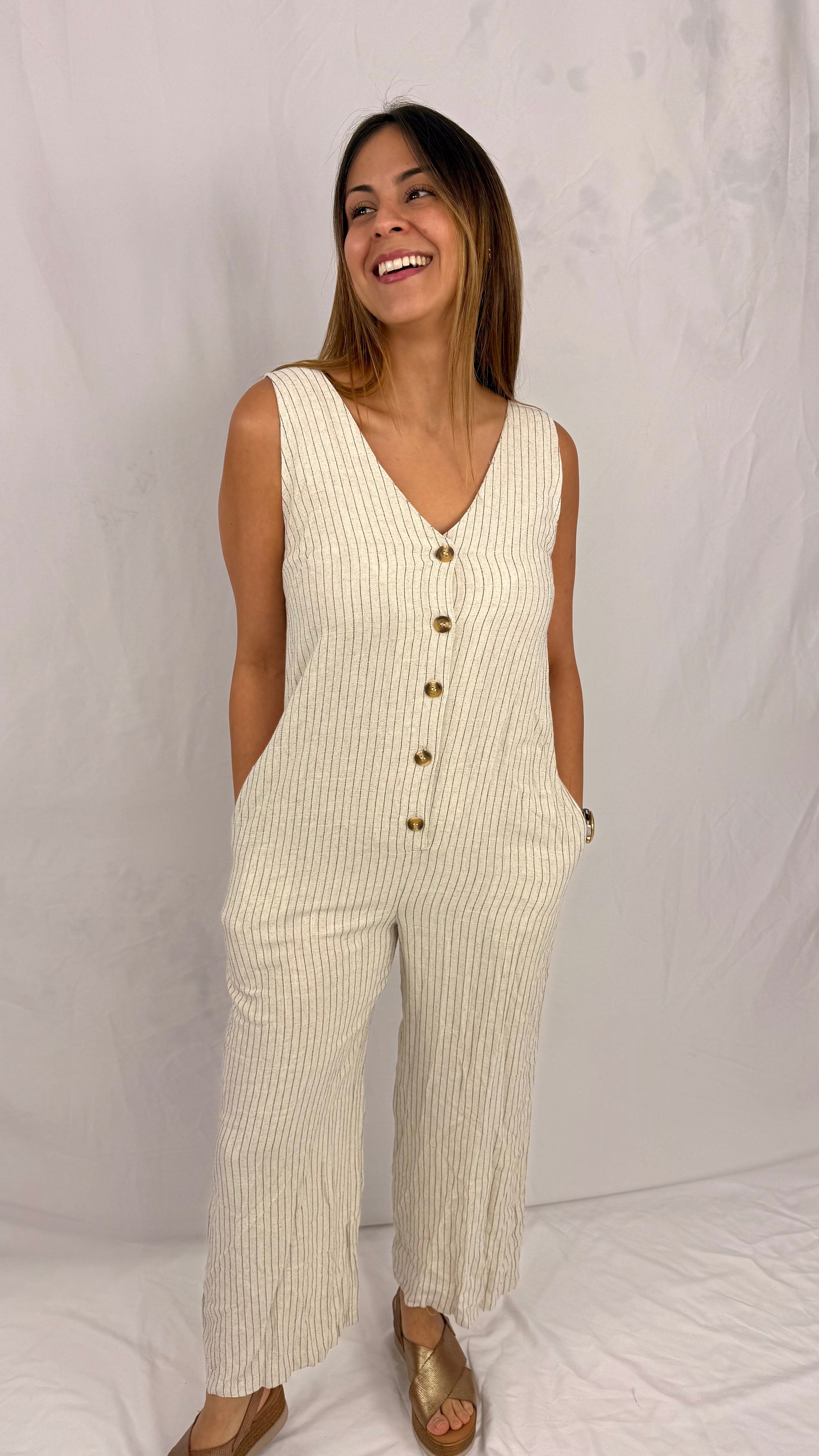 Renacer: Oatmeal & Black Stripe, Viscose & Linen, Jumpsuit