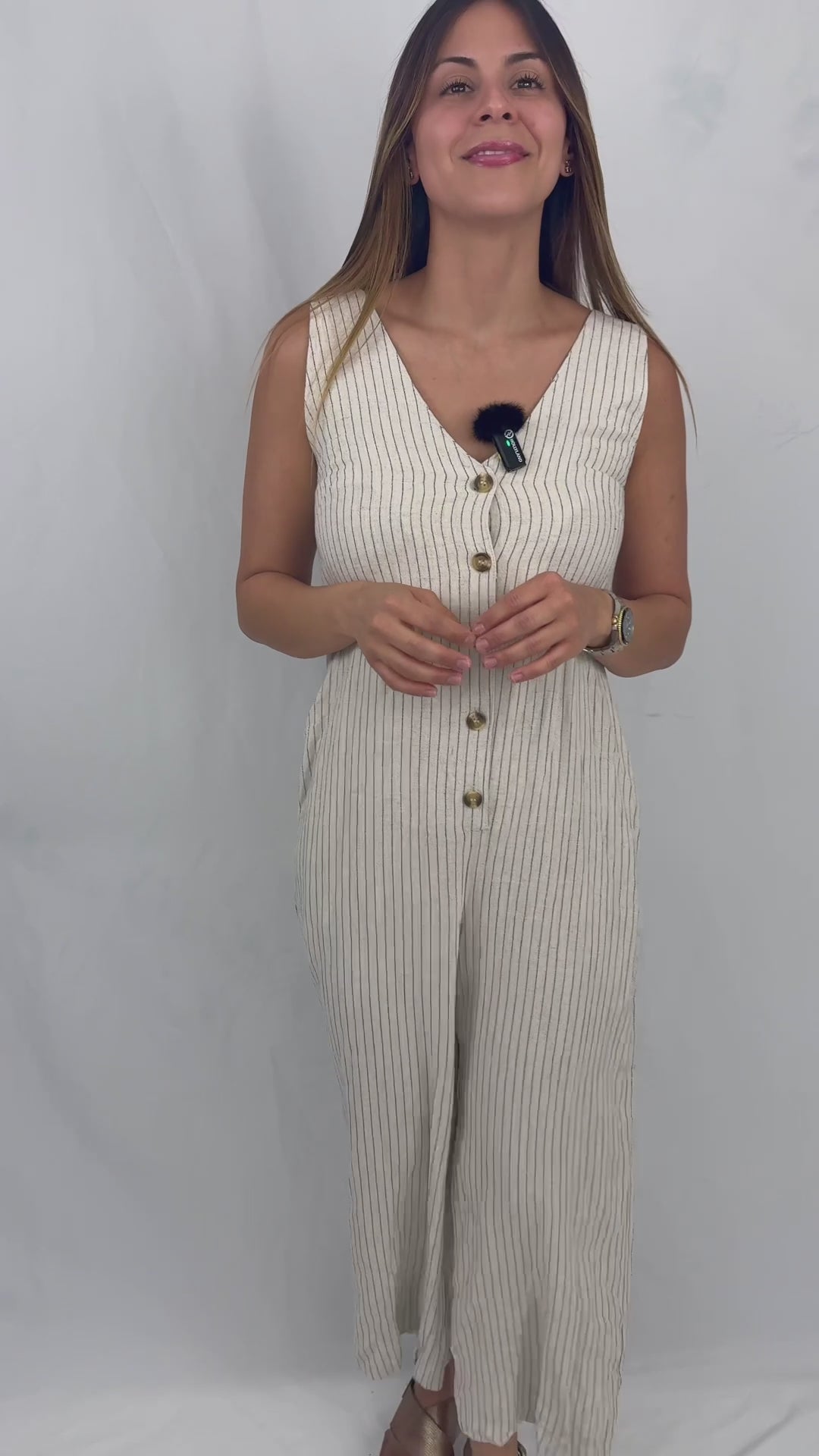 Sumérgete en la comodidad y el estilo con este jumpsuit diseñado para las mujeres que buscan frescura sin sacrificar el glamour. Confeccionado en una mezcla de 70% viscosa y 30% lino, este modelo se siente ligero y suave, perfecto para esos días cálidos donde lo último que deseas es complicarte.