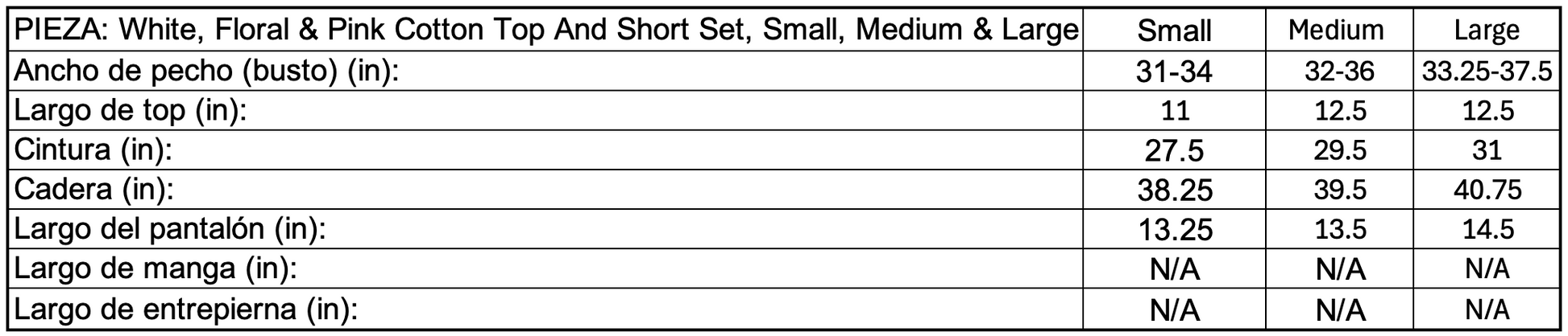 White, Floral & Pink Cotton Top And Short Set, Small, Medium & Large