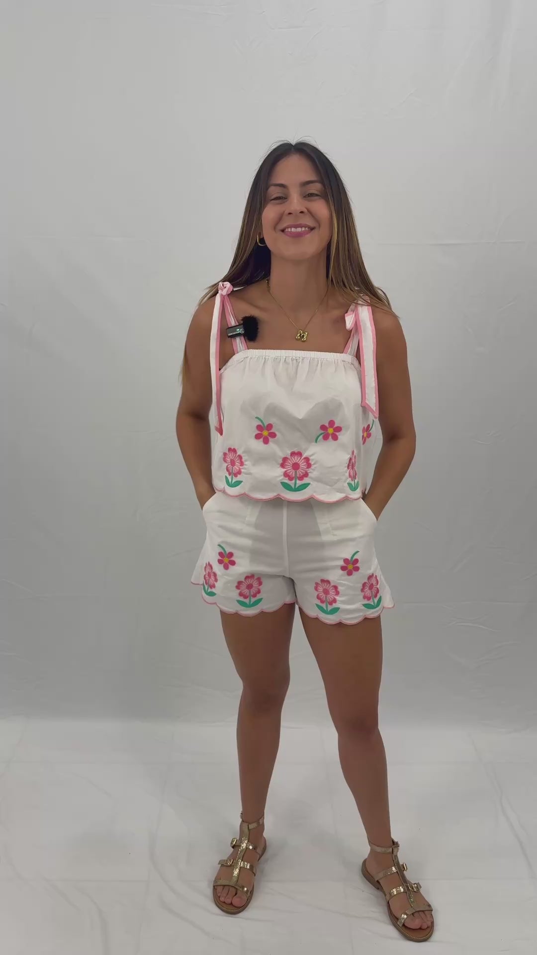 Luce como un rayito de sol con este set lleno de color, frescura y encanto. Ideal para días calurosos, salidas espontáneas o simplemente para sentirte linda sin esfuerzo. Diseñado en una mezcla suave de algodón y spandex, este conjunto combina comodidad y estilo con un fit que se adapta a ti.