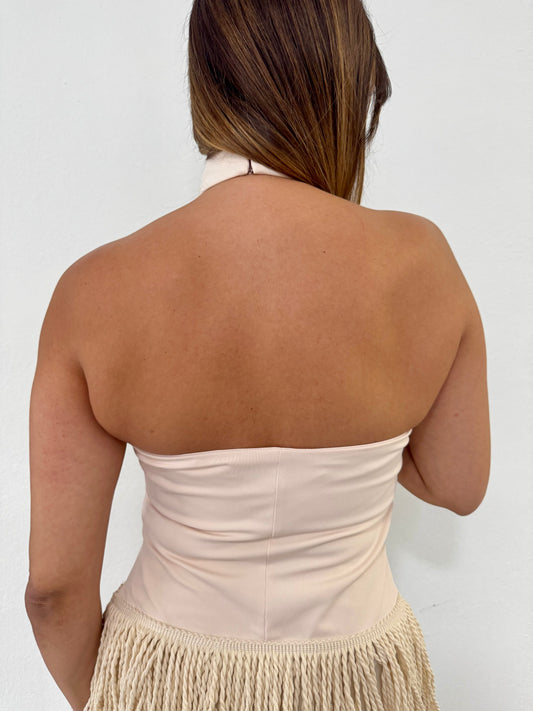 Cream Fringe Halter Neck Top, Polyester, Small, Medium & Large